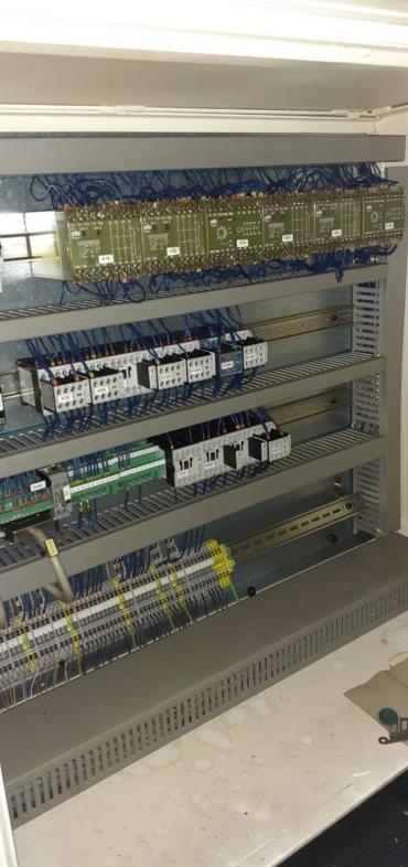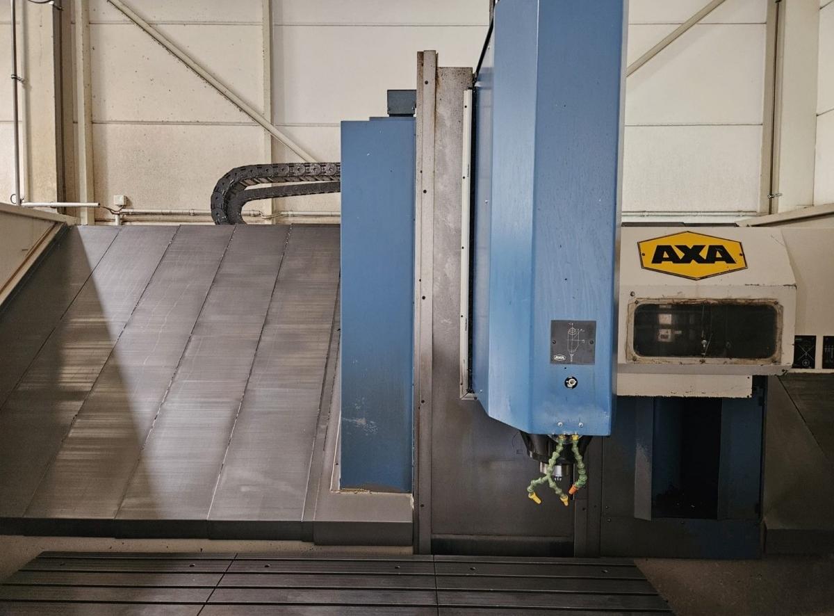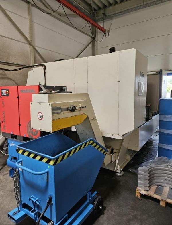Die Maschine hat einen durchgehenden Tisch für längere Teile oder mit Trennwand