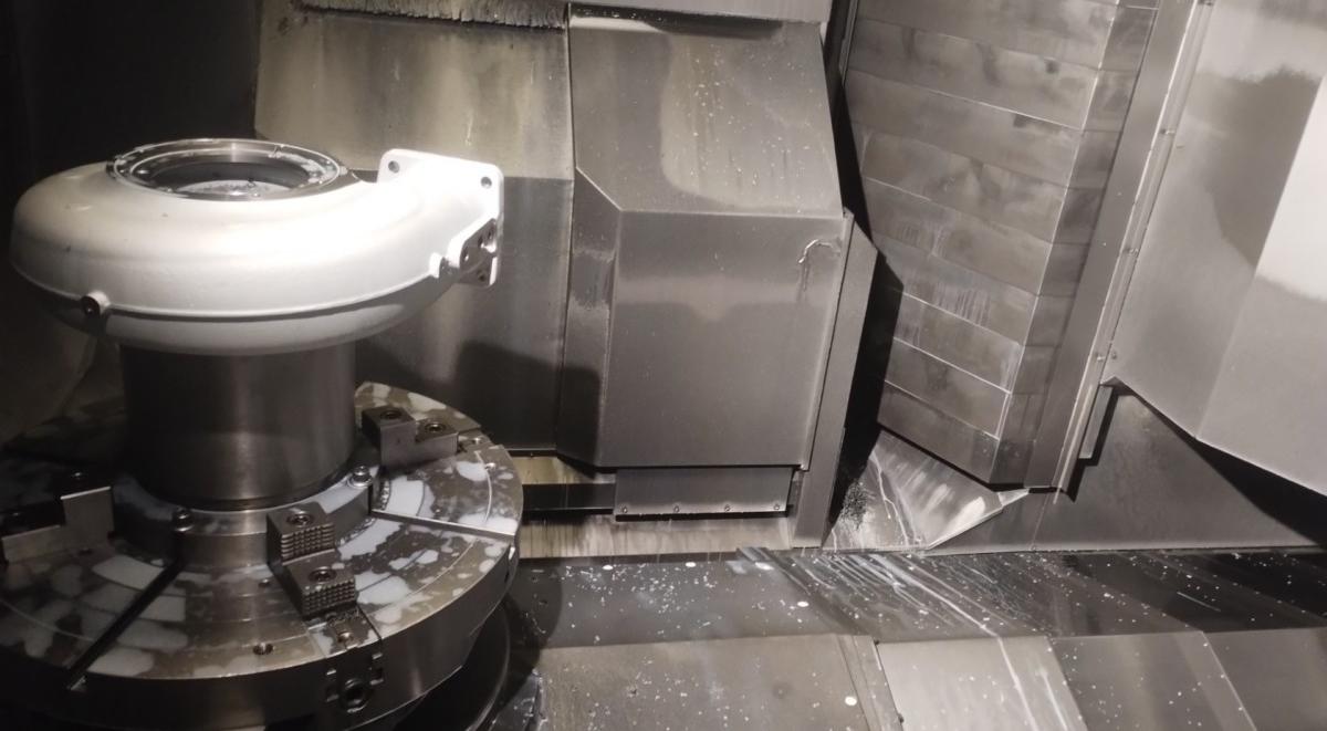 Fräs- und Drehzentrum mit 5 gesteuerten Achsen. Steuerung: Mazatrol Matrix.