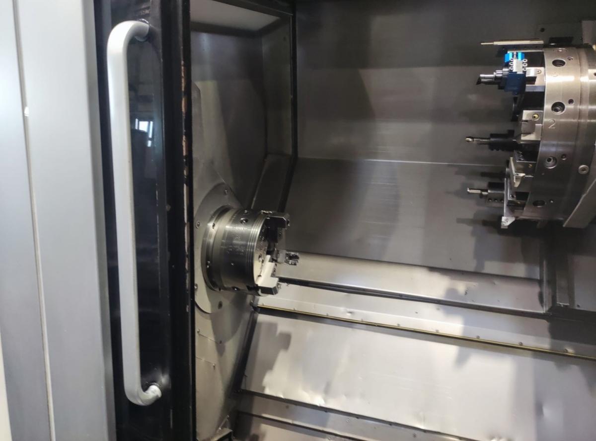 Machine has chip conveyor, chuck and tailstock.