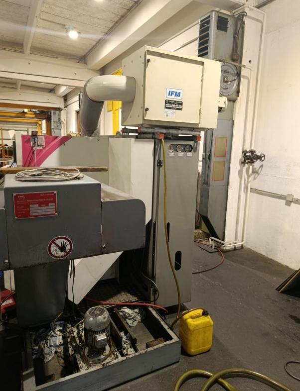 Machine has dust exhaust and chip conveyor.
