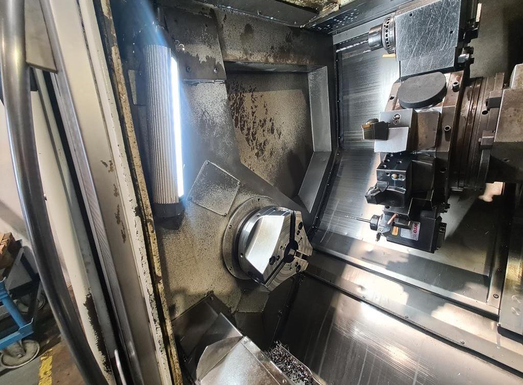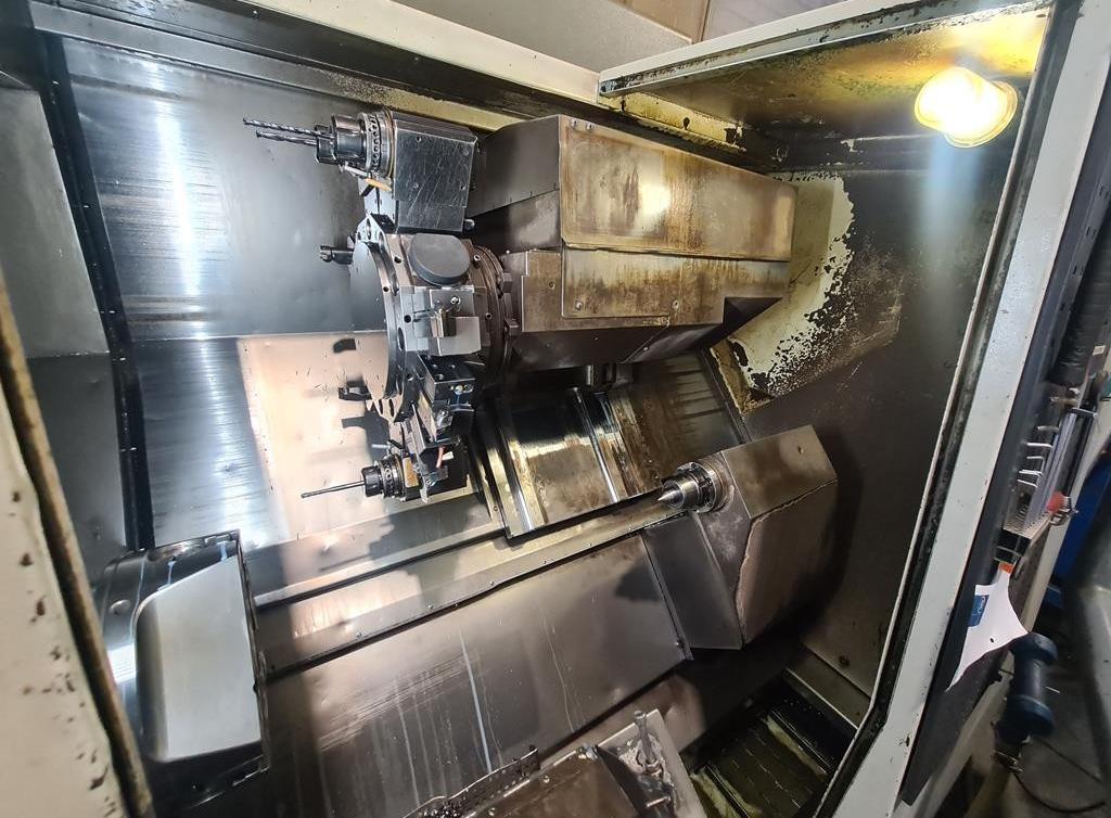 Machine has C-axe, Y- axe and live tooling.